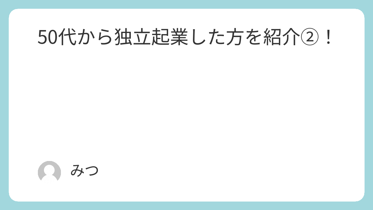 第二キャリア;独立起業して「雇われない」働き方(50代~80代)