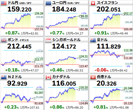 主要通貨に対して円安が加速。