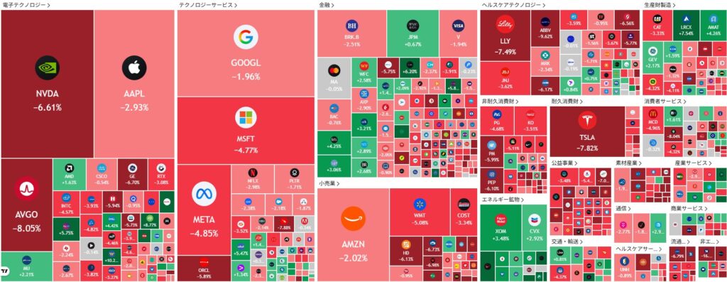 株式市場は全面的に大幅安となりました。