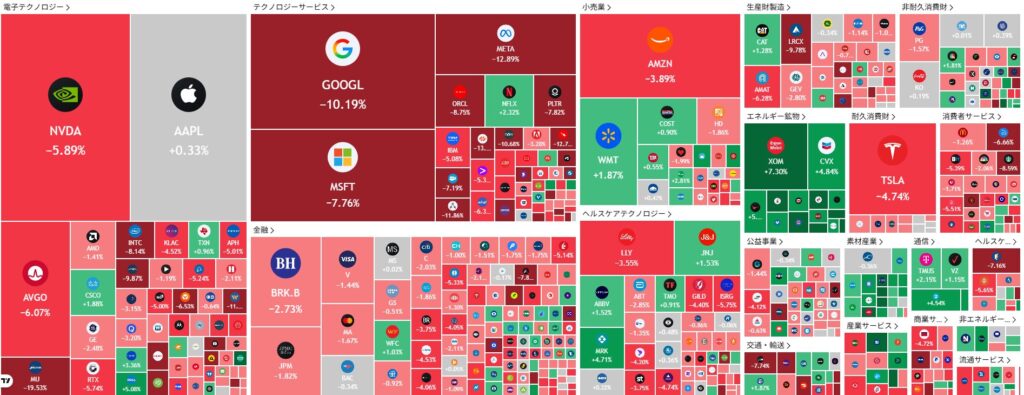 【週間ヒートマップ】ハイテク株中心に全面安へ