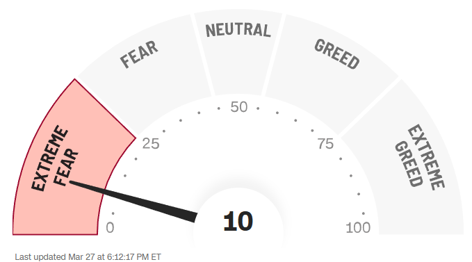 【Fear & Greed Index】投資家心理は極度に弱気となっています